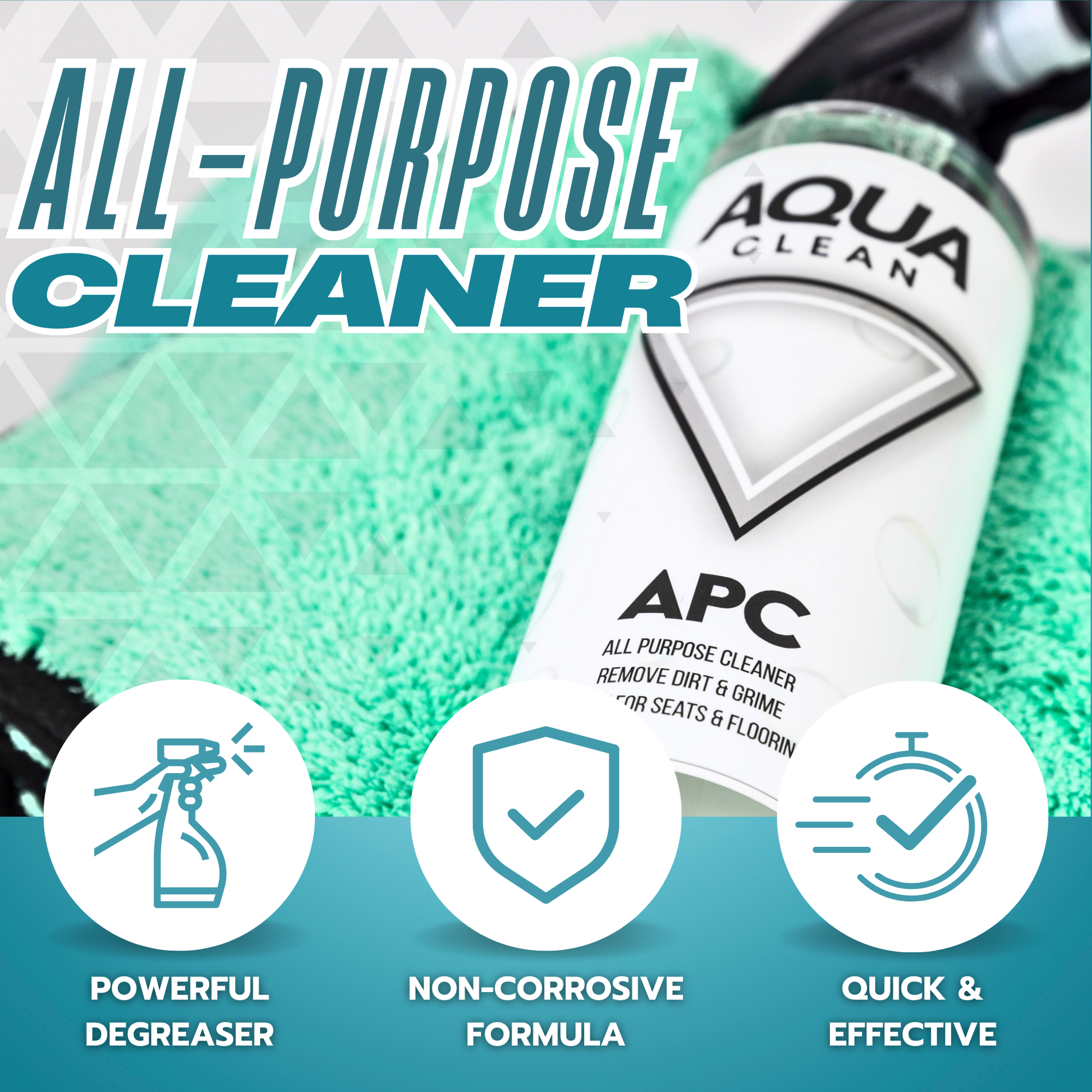 Spray AquaClean APC directly onto the surface, allow it to sit for 30 seconds to break down grime, then scrub with a soft bristle brush or wipe with a microfiber towel. Rinse thoroughly with water for a flawless finish. For tougher stains, repeat as needed.