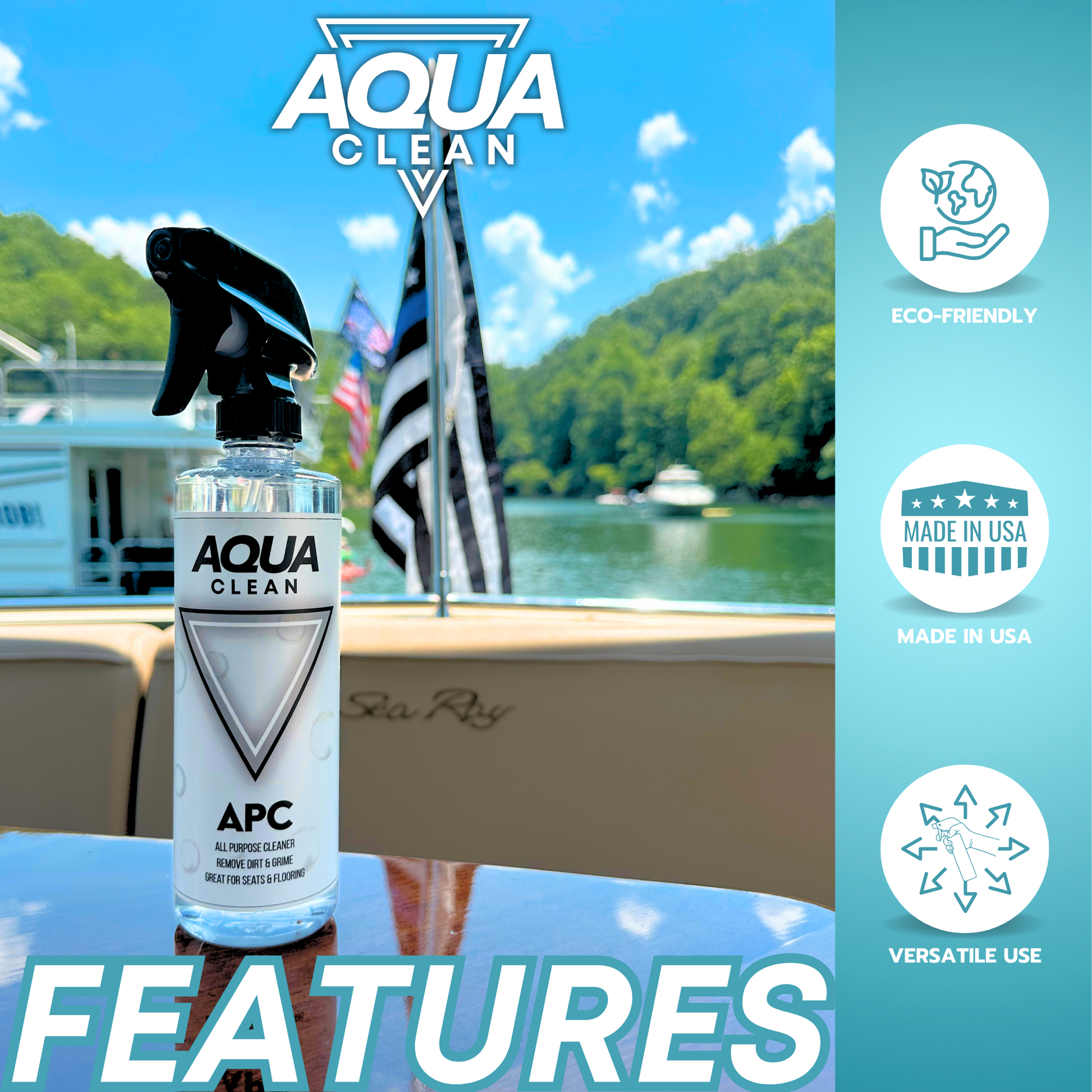 APC is formulated to be tough on dirt and grime but safe on all of your boat surfaces. It's especially good at removing sunscreen, dirt and grime from your seats and even oil and grease from engine hatches.